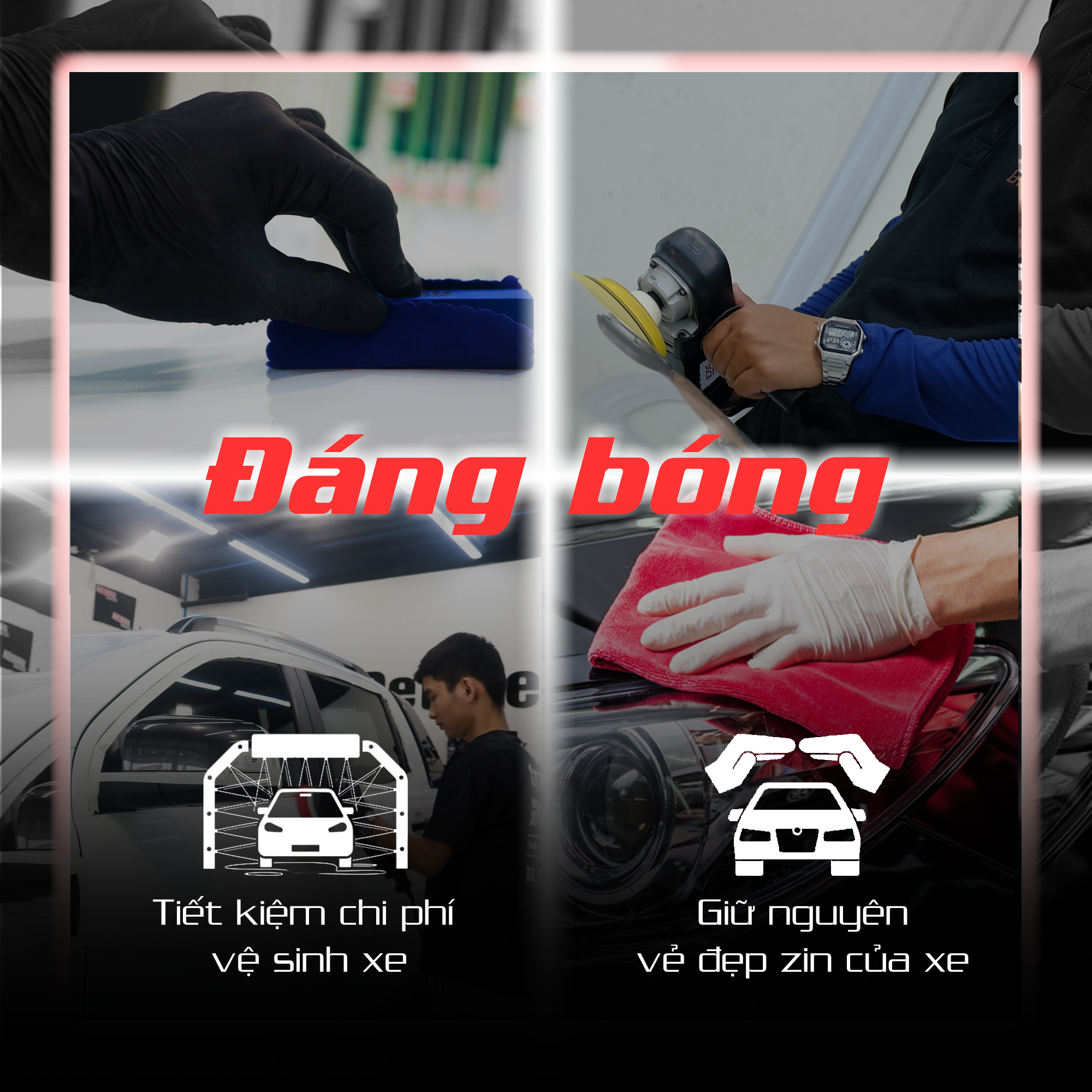 Đội ngũ kỹ thuật viên có tay nghề cao sẽ tư vấn cho khách hàng cách đánh bóng xe hiệu quả với giá thành hợp lý nhất. Quý khách hàng sẽ luôn yên tâm khi giao xe cho chúng tôi đảm bảo chiếc xe của bạn sẽ lại bóng đẹp như vừa xuất xưởng.